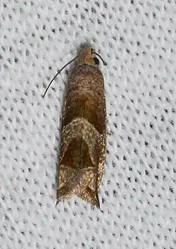 The wingspan is 14 mm. Adults are on wing from March to October.[2]