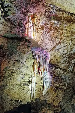 The Sophie Cave consists of a complex of a total of four caves: the entrance portal, which has always been known, the Ahornloch, the adjoining Kleinstein Cave, the actual Sophie Cave discovered in 1833 and the Hösch Cave, which was initially filled in. Together, the individual caves form the Kleinstein Cave complex or Sophie Cave. It has a length of about 900 meters,[2] with the actual Sophie Cave with its three sections being 500 meters long. In the cave register Franconian Alb, which has more than 3000 caves in an area of 6400 square kilometers, the Sophie Cave is registered as B 27 and the Hösch Cave connected to it as B 24.[4] The cave is designated as geotope 472H009[5] by the Bavarian State Office for the Environment. See also the list of geotopes in the district of Bayreuth.