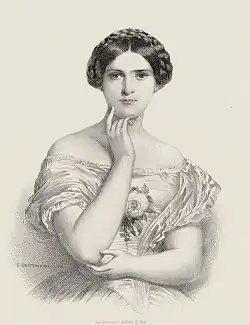 Sophie Johanne Charlotte Crüwell, vicountess Vigier, stage name Sophie Cruvelli (12 March 1826 – 6 November 1907) was a German opera singer. She was a dramatic soprano who had a brief but stellar public career especially in London and Paris in the middle years of the 19th century.[1] She was admired for her vocal powers and as a tragédienne. Both Verdi and Meyerbeer created operatic roles with the intention that she should first perform them.[2]