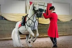 The South African Lipizzaners is a riding academy that operates according to the classical model just outside of Paarl, in the Western Cape province of South Africa. In contrast to other classical riding schools, only women ride and train the 40 Lipizzan stallions. Public performances take place every week on Sundays. There is also an affiliated stud farm that provides horses for the academy as well as preserving a valuable genetic outcross pool for European studs.