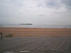 In 2002, NYC Parks started enforcing an obscure rule prohibiting bicycling on the boardwalk. Afterward, a segregated bike lane was painted on the boardwalk.[87] The beaches continued to suffer from pollution. A New York City Council report in 2004 designated South Beach and Boardwalk as the dirtiest of the city's seven beaches.[88] A separate, independent survey in 2007 rated South Beach as being "challenged", though Midland Beach was in much better condition.[89] In a 2009 survey, South Beach's boardwalk, facilities, and beach had been rated as being poorly maintained, but by 2011, it was rated as the best-maintained beach in the city, in even better condition than Midland Beach.[90]