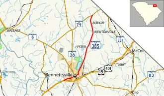 4. ^ "Overview map of SC 385 Conn. (Bennettsville)" (Map). Google Maps. Retrieved October 4, 2020.