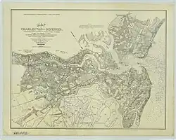 The Union besieged the fort after the unsuccessful assault. By August 25, Union entrenchments were close enough to attempt an assault on the Advanced Rifle Pits, 240 yards in front of the Battery, but this attempt was defeated. A second attempt, by the 24th Mass. Inf., on August 26 was successful. After enduring almost 60 days of heavy shelling, the Confederates abandoned it on the night of September 6–7, 1863. withdrawing all operable cannons and the garrison.[25][26]