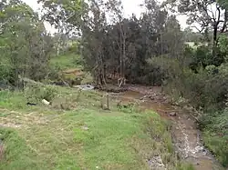 The creek rises in Sydney's south western suburbs below the former Oran Park Raceway about 4 kilometres (2.5 mi) north-east of Narellan and 7 kilometres (4.3 mi) west of Minto. In its upper catchment, the creek forms the boundary between the suburbs of Oran Park and Catherine Field. The creek flows generally north, joined by seventeen tributaries including Badgerys Creek, Kemps Creek, Ropes Creek and Eastern Creek, until reaching its confluence with the Hawkesbury River, near Windsor. The creek descends 94 metres (308 ft) over its 70 kilometres (43 mi) course.[2]