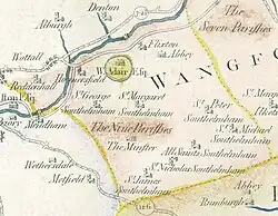 In The Suffolk Traveller (1735) John Kirby describes how Wangford Hundred is divided into three parts: the nine parishes, the seven parishes and a remaining part around Beccles. The nine parishes are: