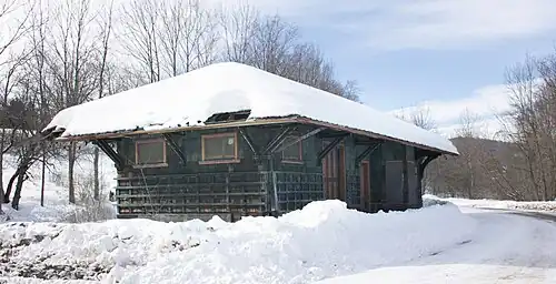 South Gilboa station is a disused train station in South Gilboa, New York. The original station, at MP 70.4, was a spartan facility with a long platform on the end for ice from Mayham Pond, near the station, to be loaded onto freight cars. The ice would then be shipped to ice houses in Kingston, New York. However, this building was torn down by the Ulster and Delaware Railroad, and replaced with a new one in the early 1900s.[3]: 5