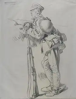 South Irish Horse, a Dubliner resting on his way to Arras Front, drawing by William Orpen, 1917