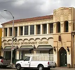 "By 1940, approximately 70 percent of the black population of Los Angeles was confined to the Central Avenue corridor"; the area of modest bungalows and low-rise commercial buildings along Central Avenue emerged as the heart of the black community in southern California.[2] Originally, the city's black community was concentrated around what is now Little Tokyo, but began moving south after 1900.[12] It had one of the first jazz scenes in the western U.S., with trombonist Kid Ory a prominent resident.[13] Under racially restrictive covenants, blacks were allowed to own property only within the "Slauson Box" (the area bounded by Main, Slauson, Alameda, and Washington) and in Watts, as well as in small enclaves elsewhere in the city.[11] The working- and middle-class blacks who poured into Los Angeles during the Great Depression and in search of jobs during World War II found themselves penned into what was becoming a severely overcrowded neighborhood. During the war, blacks faced such dire housing shortages that the Housing Authority of the City of Los Angeles built the virtually all-black and Latino Pueblo Del Rio project, designed by Richard Neutra.[14]
