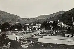 The village before the 1886 fire; soon afterward; and after rebuilding