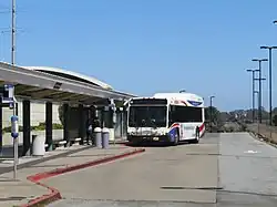 SamTrans bus routes 122, and 130 stop in the busway on the west side of the station. Route ECR stops on El Camino Real west of the station. Route 35 stops at the corner of Mission Road and Evergreen Drive on the east side of the station.[4]