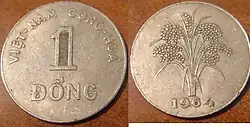 | 1 đồng | 23 mm | Nickel-plated steel | "Việt Nam Cộng Hòa", value | Rice plant | 1971 | ||