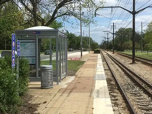 In 1980 and 1981, the Green and Blue Lines were completely renovated with new track, ballast, poles and wiring, and new stations were built along the line. The renovated line along Van Aken Boulevard opened on October 30, 1981.[3]: 111