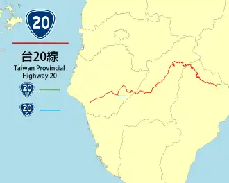 The Southern Cross-Island Highway (Chinese: 南橫公路; pinyin: Nán Héng Gōnglù), also known as Provincial Highway No. 20, links Tainan City on the west coast to Taitung City on the east coast, on the southern section of the island of Taiwan. The road is 209 kilometres (130 mi) long.