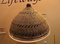 Specific tools were created including ones to strip fruit off of bushes and trees, ones used for winnowing, and ones used to get to roots better. They would also tightly weave these big baskets with clay and resin to create cooking pots and water jugs. Oftentimes, smaller tools were left behind, whereas bigger products such as cooking pots went with the families as they moved around. Based on the region the families were located determined different uses for the weaving. For instance, those who lived by marshes learned to create duck decoys, nets, and rafts to better hunt the water fowl. Another use for this skill was to create their houses. They would use long thin grasses to tightly weave stalks of Cattails together, and in doing so they created these long board-like sections of grasses that they would set up around long willow limbs stuck in the ground.[18]