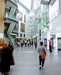 In 2005, a major expansion was planned which included moving most services from Frenchay Hospital to the Southmead site, with Frenchay being downgraded to a Community Hospital.[8] Full approval for the project was given by the NHS South West board in January 2009.[9] A new building, which was designed by the Building Design Partnership and built by Carillion at a cost of £430 million, was procured under a Private Finance Initiative contract in 2010. The scheme brought all departments and services together under one roof.[10] Called the Brunel building, it would have 800 beds, 24 operating theatres, patient gardens, a public square, a helipad and visitors' multi-storey car park.[11] In 2013, ahead of the opening of the expanded hospital, a public poll was held on whether to keep the hospital's name as Southmead Hospital or to change it; the outcome was to keep the original name. Another proposed name, Bristol Brunel, named after Bristol engineer Isambard Kingdom Brunel, was subsequently given to the new main building, which became the Brunel Building.[12]