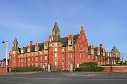 After the existing premises became too small, it moved to a new purpose-built building designed by Thomas Withnell in the Gothic Revival style on The Promenade in 1853.[2] Its name changed again when it was extended and became the Southport Convalescent Hospital and Sea-Bathing Hospital in 1862.[1] It was extended again to create a new front range, to a design by Paull and Bonella, in the early 1880s.[2] The building was officially re-opened by Edward Stanley, 15th Earl of Derby as the Cotton Districts Convalescent Home on 30 October 1883.[3]