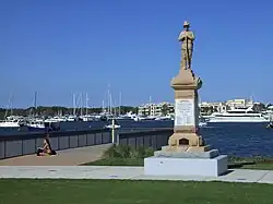 On 25 April 1922 (ANZAC Day), Southport War Memorial located at the foot of Nerang Street was dedicated by the Member of the Queensland Legislative Assembly for Albert, John Appel, in the presence of many Southport people.[41] In 2010, renovation of the parklands required the relocation of the memorial; it was re-dedicated on 11 November 2010.[42]