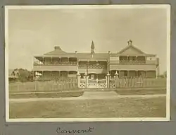 In April 1900, the Roman Catholic Church purchased a parcel of land for a convent on Marine Parade opposite the pier (27°57′56″S 153°24′54″E / 27.9655°S 153.4151°E / -27.9655; 153.4151 (Star of the Sea Convent)).[26][27] The Star of the Sea College opened as day school on 21 January 1901. Operated by the Sisters of Mercy, there were about 60 students enrolled on the opening day.[28] In 1934, the school commenced offering secondary school education.[29] The school closed at the end of 1990 with the girls transferring to Aquinas Catholic College (previously a boys-only school).[13][30] The site was sold with buildings being demolished in 2016.[31] The demolition unearthed a time capsule placed in March 1988 as part of the Australian bicentenary celebrations.[32]