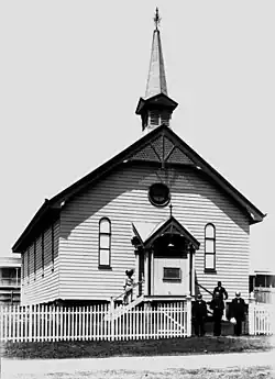 In 1879, the first Congregational services were held in Southport in the home of J. C. Lather conducted by the Reverend J. Whiting who ministered in the Logan and Albert River districts. Land was purchased in Queen Street and a Congregational church was opened there on 9 October 1880.[14] It was used for monthly Congregational services but was also available for use by other denominations. The first minister, Reverend A.R. Bailey was appointed in 1883. A manse was built in Bauer Street. J.B. Evans was the minister from late 1885, being replaced by J. G. Cribb in 1887. In 1888 a new Congregational Church was erected in White Street costing £530 and based on the designs prepared for the Milton Congregational Church in Brisbane. In 1899, the manse was relocated to behind the White Street church.[15]