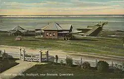 In 1883, the first Southport Pier was built to allow steamships to bring cargo and passengers to Southport.[16][17] In the 1880s, Southport became the chosen site for the holiday residence of the Queensland Governor Sir Anthony Musgrave and his wife Lady Musgrave. Known as the Summer Place and still situated on the present day site of The Southport School, the choice of Southport as the preferred holiday destination for one of the most prominent couples in Queensland established the township as Queensland's pre-eminent seaside resort.[18] Following the death of the governor in 1888, the Summer Place continued to be a holiday home for visitors to the area.[19][20]