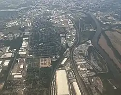 Farther west along the I-95 / Route 1 Corridor, city and county officials have contemplated how to revive the Jefferson Davis Corridor. While economically challenged, it has a robust immigrant population, particularly Latino. As Manchester has seen recent influx of historic tax credits used to redevelop old properties, the historically black Swansboro and Blackwell neighborhoods are now the subject of fierce debates about gentrification.[24][25]