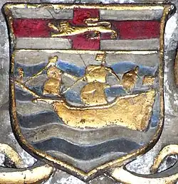 - ^ The chief is identical, but the field (the sea) is here shown barry wavy of nine argent and azure (perhaps identical to a sea proper) and some of the charges are not visible, such as the dolphin's head