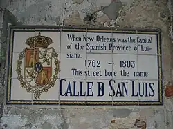 Louisiana (Spanish: Luisiana, [la lwiˈsjana]),[1] was a province of New Spain from 1762 to 1801. It was primarily located in the center of North America encompassing the western basin of the Mississippi River plus New Orleans. The area had originally been claimed and controlled by France, which had named it La Louisiane in honor of King Louis XIV in 1682. Spain secretly acquired the territory from France near the end of the Seven Years' War by the terms of the Treaty of Fontainebleau (1762). The actual transfer of authority was a slow process, and after Spain finally attempted to fully replace French authorities in New Orleans in 1767, French residents staged an uprising which the new Spanish colonial governor did not suppress until 1769.[2] Spain also took possession of the trading post of St. Louis and all of Upper Louisiana in the late 1760s, though there was little Spanish presence in the wide expanses of what they called the "Illinois Country".