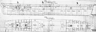 A plan showing body plan, upper deck, hold and platforms of CSS Alabama, sister ship of Tornado