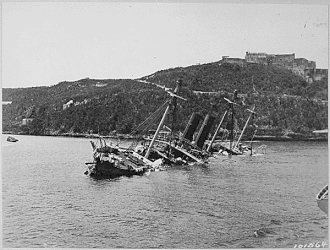 On 6 June 1898, the blockading U.S. warships bombarded the harbor, hitting Reina Mercedes 35 times, starting two fires aboard her, and killing her second-in-command, Commander Emilio Acosta y Eyermann,[5] the first Spanish naval officer to die in the war.[3]