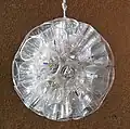 A sparkleball is an ornament handmade out of Christmas lights and cups, most usually plastic cups. (Sparkleballs have also been built from bottles and other vessels.) Instructions for making these illuminated spheres have been passed by word of mouth for fifty or more years, but their inventor and origin are a mystery.[1] Today instructions can be found on numerous DIY sites online and on social media.[2][3] Different methods can be used to attach the cups including soldering,[4] cable ties, hot glue gun, and stapling with a plier stapler. One or more bulbs from a strand of lights is inserted through a hole in the cup bottoms, so each cup becomes a reflective chamber. The size and shape of the cup determine the size of the sparkleball. Distant relative of the disco ball and an American outsider craft, sparkleballs can be spotted all over the United States, particularly in campgrounds and during the holidays. The largest number of sparkleballs in one display are on the "Sparkleball Streets" of Fullerton, California during the holidays (1535 sparkleballs were counted in 2024 according to a local holiday sparkleball scavenger hunt). Residents of North Yale, Princeton, Union and Nutwood Avenues hang hundreds of sparkleballs from their trees after Thanksgiving, a tradition started by Bill and Don Bales.[5][6][7][8]