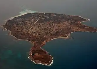 In 1882, a group of five men were found on Spilsby Island after being castaway there for nine days. They had been employed by the Sir Joseph Banks Guano Company. They had sailed to Dangerous Reef beforehand, where they had attempted to kill some Australian sea lions.[49] They survived by catching and eating sheep after their vessel was wrecked.[50] They expressed their gratitude to the mayor of Port Adelaide for his success in arranging a search and rescue operation.[51] In 1899, the schooner Lucretia ran aground on Buffalo Reef, near Spilsby Island.[52][53] In 1901, the Acamas became stranded on Sandy Spit north of Spilsby Island, and waited for a spring tide to refloat.[54][55] In 1917, the ketch Ina was wrecked at the south-eastern end of the island.[56] The vessel's anchor was recovered by chance in 1941.[57] In 1923, the schooner Rooganah was damaged when it struck a rock off the island but did not sink.[58] In 1924, James Marshall was drowned in rough weather off Spilsby Island. His body was not recovered.[59]
