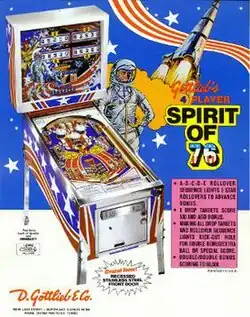 Spirit of 76 is a pinball game designed by Ed Krynski and Wayne Neyens and released in 1975 by Gottlieb. The pinball machine should not be confused with the pinball machine The Spirit of '76 by Mirco Games, Inc.[1][2]