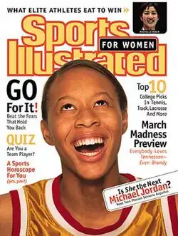 Sports Illustrated Women (previously called Sports Illustrated for Women) and also known as SI Women, was a bimonthly sports magazine covering (according to its statement of purpose) "the sports that women play and what they want to follow", from basketball to tennis, soccer to volleyball, field hockey to ice hockey and figure skating and more. It featured real athletes, told their real stories and gave the real scoop on women's sports. Sports Illustrated for Women was published by Time Inc."[1] It ran for 20 issues, between March 2000 and November 2002, targeting an audience of women, 18–34 years old, with "a passion for sports".[2]