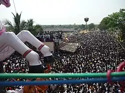 On these festival days, garland as big as the height of the Horse Idol wore to it by Devotees who had it as a promise upon realising their prayers. These garland are not made by natural flowers since it takes up to a week for a person to thread a one. The agents who specialised in making this huge garlands start advertising and accepting the orders two/three months before the festival itself.