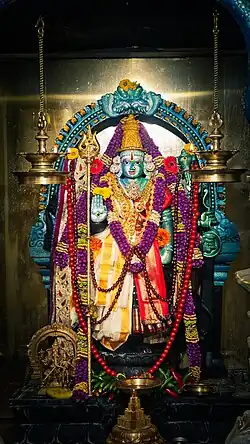 Every Friday evening between 100 and 150 people attend the Pooja, and on other weekdays 10 to 20 attend. Six services per day are held. Usually in July a ten-day temple festival, dedicated to the Hindu Goddess Durga, is celebrated, having about 4,000 visitors.[3][4]