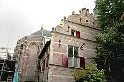 Shortly after the completion of the first parish church, a parsonage was completed in 1619. This is a part of the old church that still stands. Its mannerism façade with sandstone and chalk was restored in 1995-1997, and is reminiscent of a southern Netherlands style.[4]
