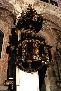 Before the St. Catherine's was built, a 14th-century Dominican church occupied the area.[1] When the Jesuits arrived in Zagreb in the early 17th century, they thought the original church too rundown and inadequate, and worked to build a new church. Construction began in 1620 and was completed in 1632.[2] A monastery was built adjacent to the church, but now the spot is home to the Klovićevi dvori art gallery.