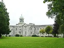 The hospital, which was designed by Francis Johnston, opened as the Carlow District Lunatic Asylum in 1832.[1] It became Carlow Mental Hospital in 1925 and, having been re-named St. Dympna's Hospital, after St. Dympna, the patron saint of mental illness, in 1958, it was taken over by the Department of Health in 1971.[2] After the introduction of deinstitutionalisation in the late 1980s the hospital went into a period of decline.[3][4] Kelvin Grove, a modern residential unit for adult clients with learning difficulties, opened on the site in 2008.[5] The main hospital closed in October 2011.[6]
