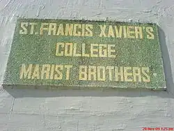 The school was founded by Jesuit Fathers in Shanghai in 1874, later in 1893 Marist Brothers were invited to teach in the college and took over full responsibility of it in 1895. Due to the religion policies of the Communist China, the Brothers were forced to leave Shanghai and moved to Hong Kong in 1949. The college was rebuilt and classes were resumed in Tai Kok Tsui at the junction of Maple Street and Sycamore Street (K.I.L. 6421) on 9 December 1955 and named St. Francis Xavier's College to emphasize the direct link with St. Francis Xavier's College, Shanghai.[2]