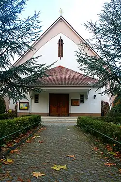 St. George's Church (Englische Kirche zu St. Georg between 1885 and 1944) is an Anglican church in Berlin, Germany, a parish of the Diocese in Europe of the Church of England. The original building was erected on Monbijou Park in 1885, but during the Second World War was destroyed in allied bombings. The original site on Oranienburger Straße happened to be in what had become the Soviet sector of Berlin in 1945 and was therefore abandoned and the ruins removed in 1949. In 1950, the congregation built a new church on the corner of Preußenallee and Badenallee in Neu-Westend, part of the Westend locality of Berlin in the British sector. The church served as the garrison church of the British Army during the Allied occupation, and reverted to civilian control in 1994.
