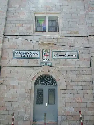 St. George's School is located next to St. George's College, just outside the walls of the Old City of Jerusalem. The school was established in 1899. The Rev. Wilbert Awdry, author of The Railway Series, taught at the school in 1933–1936.[2] Built in the affluent Sheikh Jarrah neighborhood, it served as a place where Jerusalem's Christians and Muslims would send their sons for secondary education.[3]
