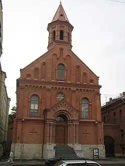St. John's Church (Russian: Церковь Святого Апостола Иоанна; Estonian: Jaani kirik) is a Protestant church in St. Petersburg, Russia.[1] The church is situated at the address 54 ulitsa Dekabristov, close to the Mariinsky Theater. Founded in 1859 to serve the Estonian community living in the city at that time, it is considered Estonia's symbol of independence. It was the place where in 1888 Jakob Hurt made the call to resist the Tsarist government's russification policy and on March 26, 1917, 40,000 Estonians began their march to Tauride Palace demanding national autonomy.