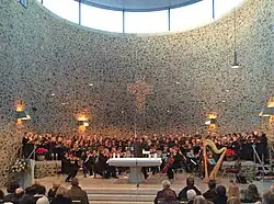 Concerts and services have also been performed by guest ensembles such as the Ukrainian chamber choir OREYA.[17] The choirs of St. Martin travelled to England in 2006 to attend services and evensong in Christ Church, Oxford, Salisbury Cathedral and St Paul's Cathedral, London. They travelled to Leipzig in 2008 to hear the Thomanerchor in Motette and services.[16] In 2009 they sang with other choirs of the diocese in the Limburg Cathedral from the Missa primi toni octo vocum of Stefano Bernardi for double chorus, conducted by Joachim Dreher and Franz Fink.[18] In 2016, they performed at the Cathedral the premiere of the oratorio Laudato si' with the choirs of Liebfrauen, Frankfurt, conducted by the composer Peter Reulein. The performance was repeated at the Frankfurt Cathedral in 2017.[19]