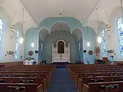 A new reredos was built in the early 1940s that incorporated the Reni painting. A faulty smoke stack leading to the chimney created a fire that did an estimated $50,000 in damage to the church on Christmas Eve 1947.[9] The fire mainly damaged the west side of the church, which included its altars. Christmas Masses were moved to the school auditorium. The Rev. Leo Kerrigan was the pastor at the time.