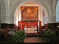 The altar piece, a depiction of the Last Supper, is unsigned but is said to portray obvious signs of the Raphaelite school, and it is supposed that Raphael himself painted the central figures. The altar piece was brought to Madras as part of the spoils of war by the British troops who stormed Pondicherry in 1761.