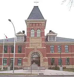 The red sandstone facade of the 1909 St. Mary's building was re-used in this school (Our Lady of Lourdes), opened 2005.
