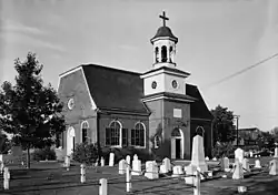 St. Mary Anne's Episcopal Church is an historic Episcopal church building located at 315 South Main Street in North East, Cecil County, Maryland. Built in 1742 of red brick in a rectangular shape to replace an earlier wooden church building on the site, it is the second parish church building for North Elk Parish, later known as St. Mary Anne's Parish, which had been established in 1706 by the General Assembly of the Province of Maryland. Originally dedicated to St. Mary, the parish added Anne to its name in thanks for a bequest it received from the estate of Anne, Queen of Great Britain, who died in 1714. Its bell tower was added in 1904. [1] [2] [3]