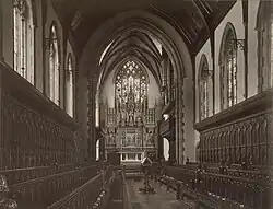The centerpiece of the campus is the Chapel of St. Peter and St. Paul (informally the "New Chapel"), constructed between 1886 and 1888.[57] It was designed by Henry Vaughan, and was one of the first American chapels to employ Perpendicular Gothic.[58] Although Vaughan was the architect of Washington National Cathedral, an architecture critic at Princeton University called the New Chapel Vaughan's masterpiece, as Vaughan died before the cathedral was completed.[58] SPS preserved the smaller Old Chapel, which dates back to 1858 and was the school's first building; it is now used for ceremonial events.[48][59]
