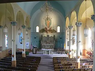 Soon after the arrival of Father Boucher, a large wooden church was built and served until 1890, when the current church was erected, during the pastorate of Father Cyrille St. Pierre. In 1889 a school and convent were built and these were replaced by the present parochial school building in 1951.