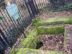 An inscribed sandstone kerb was added in 1907 and dedicated by the Venerable E. Barber, Archdeacon of Chester, on 11 November of that year.[4] A survey of the well carried out in 1995 described it as a square stone-lined pit with two large slabs on either side and two steps down from the southern side beside the road. In the bottom of the well is a ceramic pipe, which has been inserted at a later date. At the time of the survey there was water present up to the level of the first step. The cover slabs show some signs of damage but there was no sign of the kerbs added in 1907.[5]